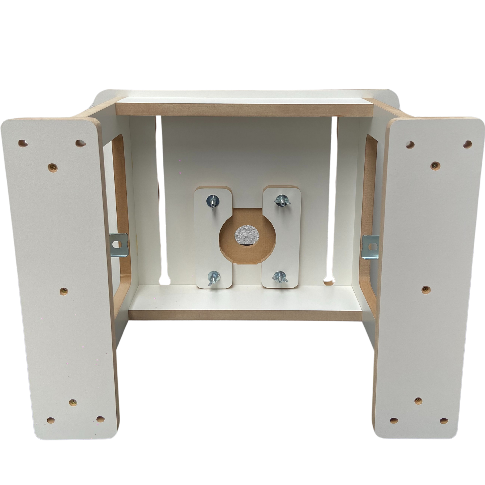 Construção Robusta: Fabricada em MDF branco laminado com 15 mm de espessura, a mesa oferece uma estrutura resistente e durável, capaz de suportar as demandas de uma oficina de marcenaria, seja para uso hobby ou profissional.