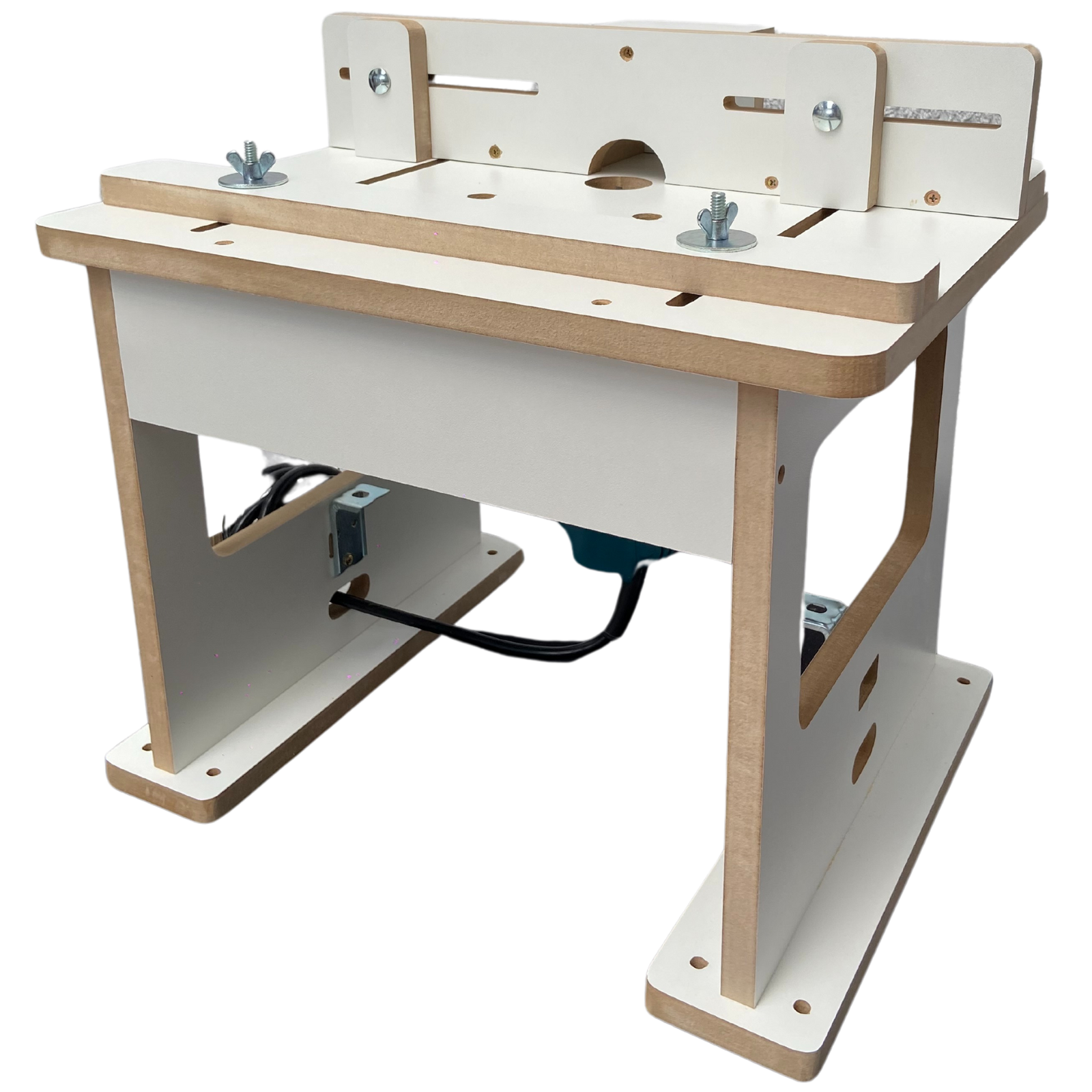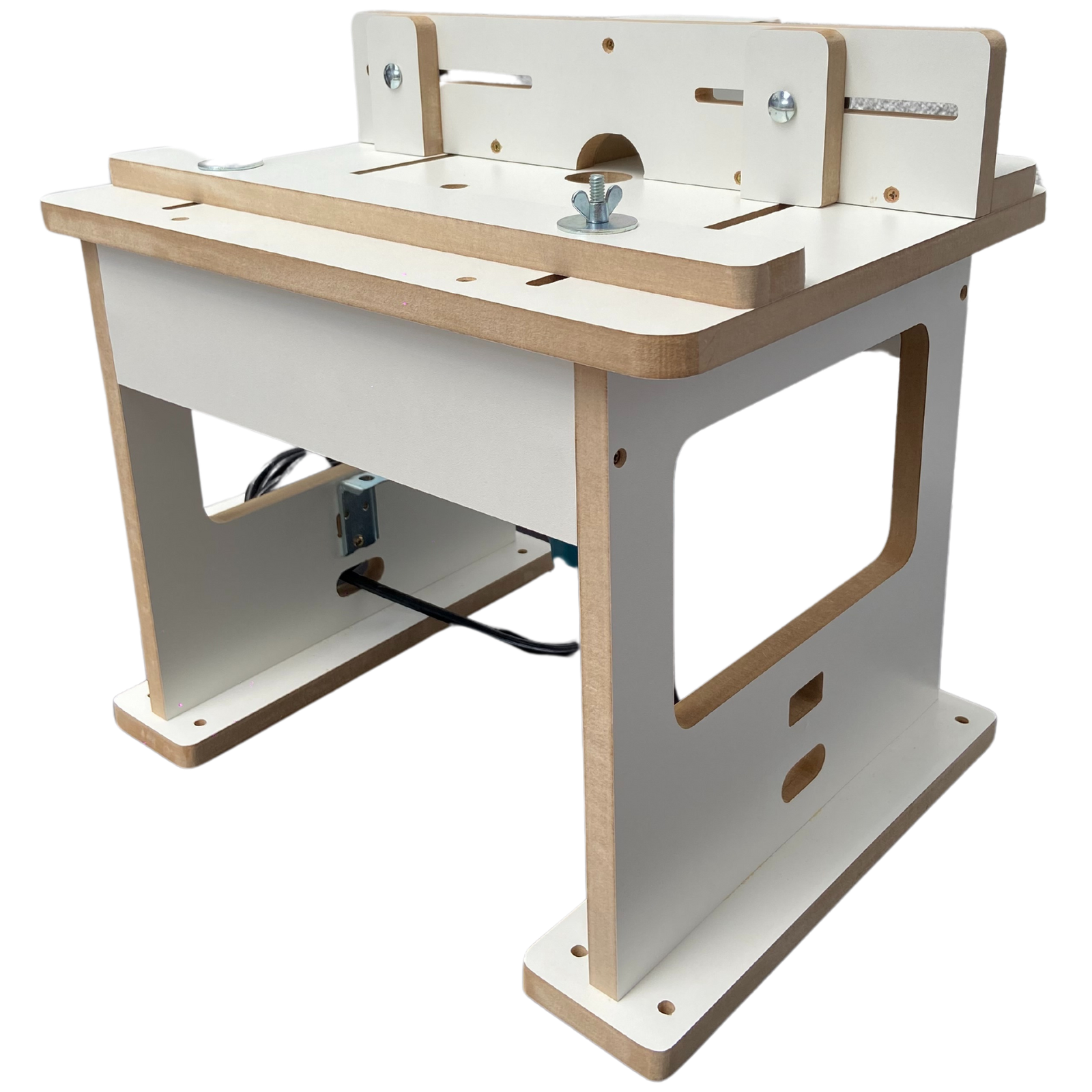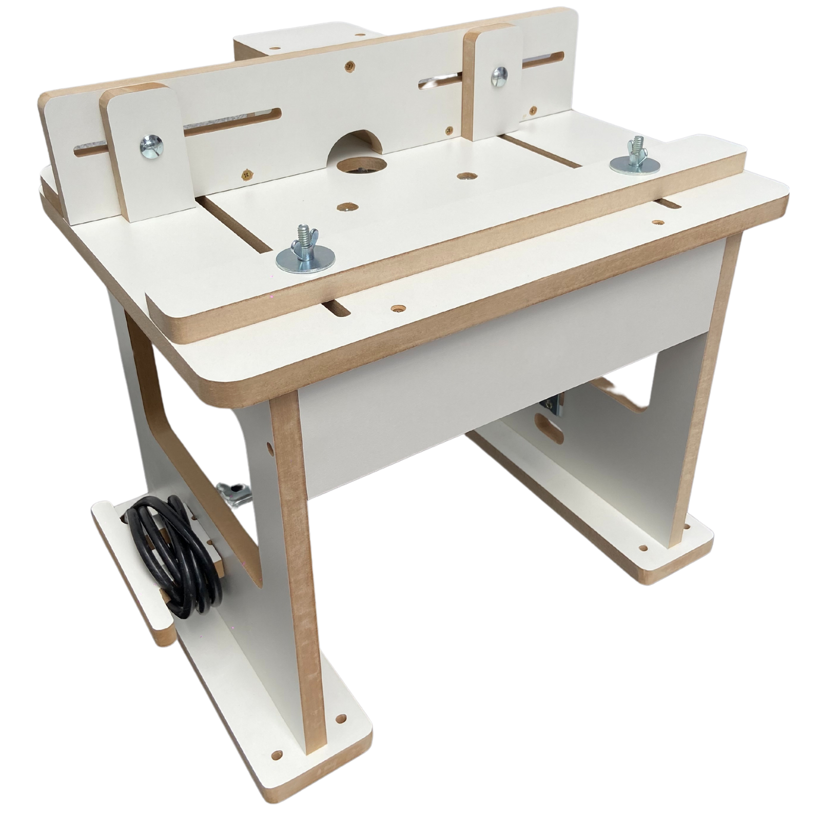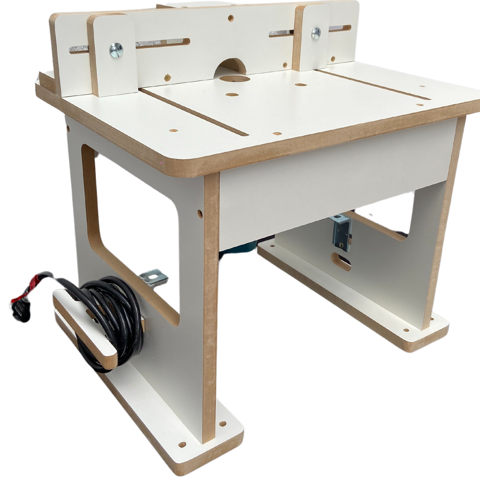 Suporte de Fios Prático: A mesa inclui um suporte de fios, permitindo que você organize e enrole o fio da sua tupia na lateral da bancada. Isso não só mantém sua área de trabalho mais organizada, mas também reduz o risco de acidentes e danos ao cabo.