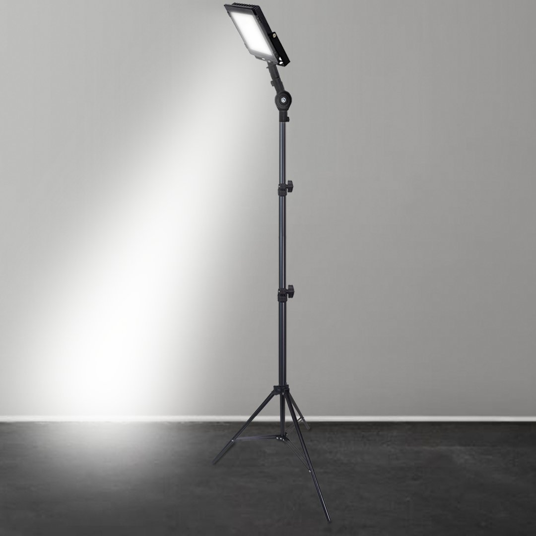 Perfeito para obras, eventos, estúdio, foto/vídeo, oficinas, vitrines e áreas de trabalho. Estrutura com regulagem de altura e cabeça reclinável para direcionar a luz onde você precisa. Holofote LED 50W branco frio, bivolt e com fiação completa, pronto para uso.