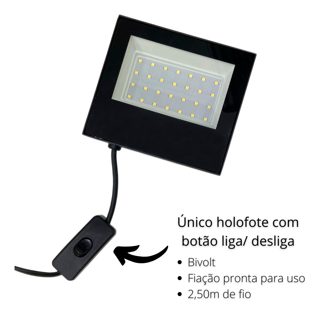• LED 50W: alto brilho com baixo consumo para uso contínuo